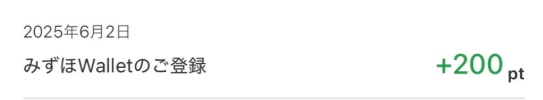 マネーフォワード(みずほ)でみずほ銀行口座連携連携した月の翌々月 1日100pt